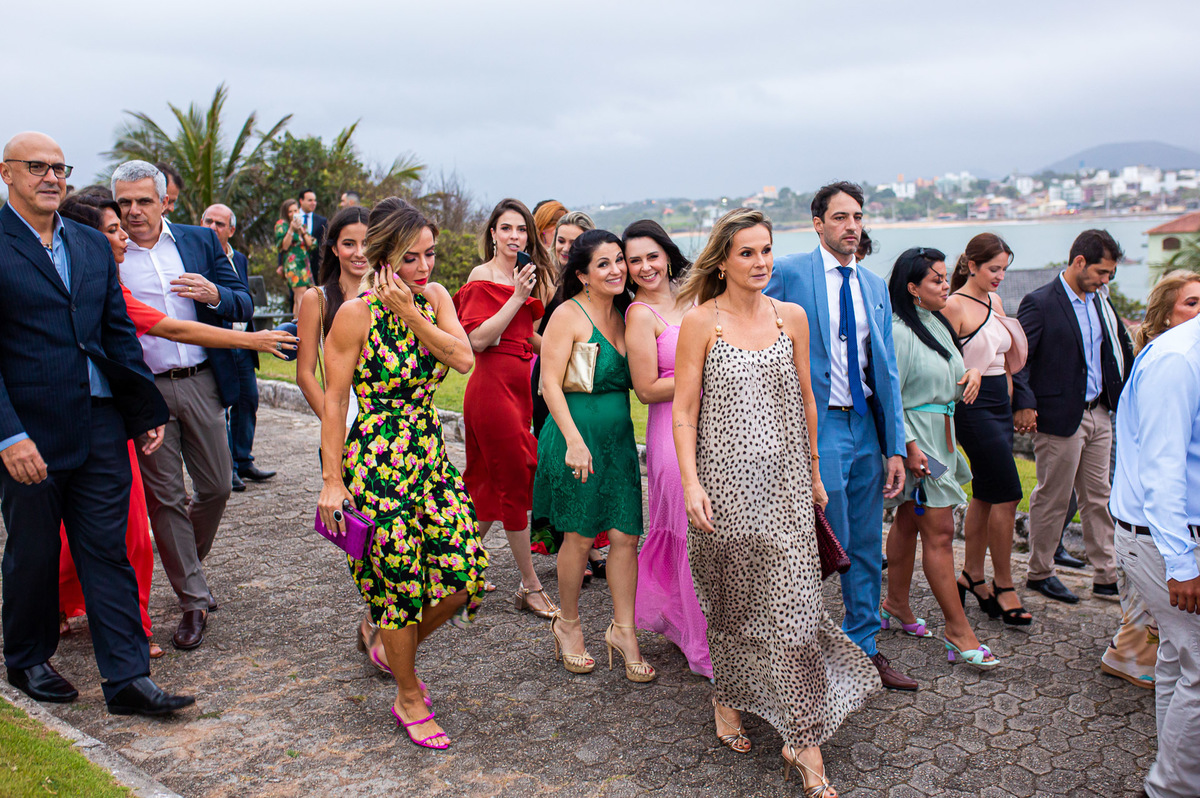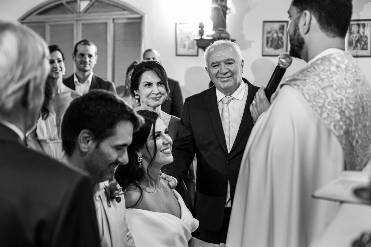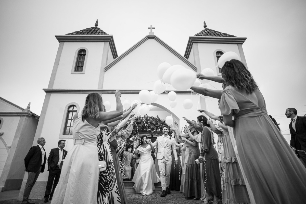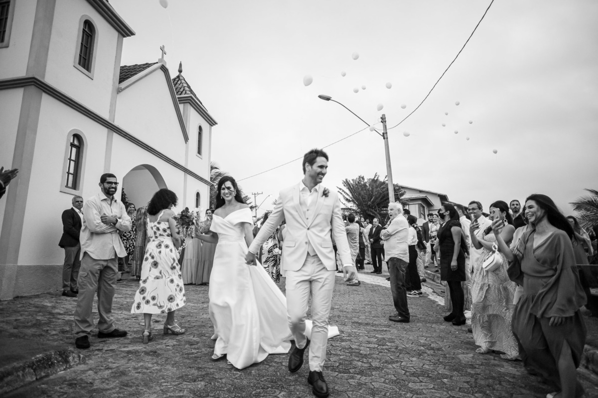 A recepção foi na casa da família do noivo, ao lado da igreja: os convidados foram para a festa caminhando.