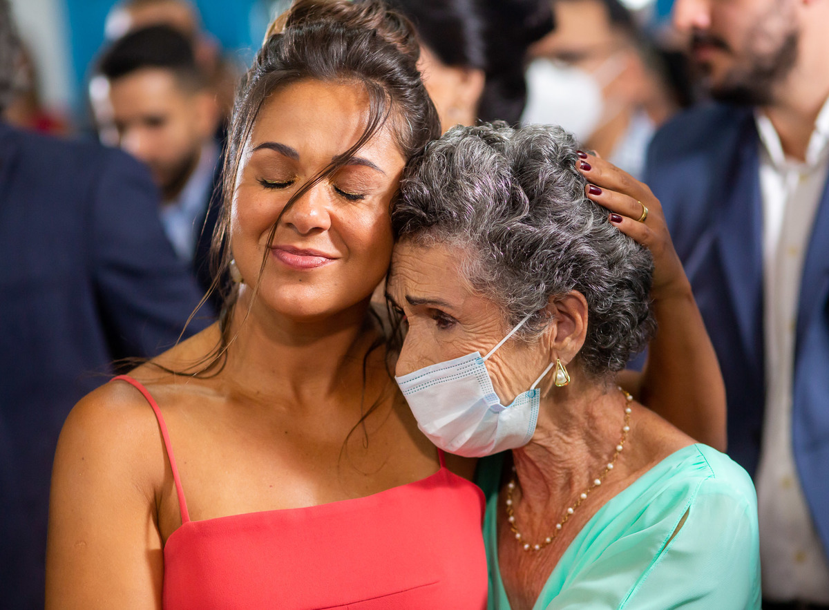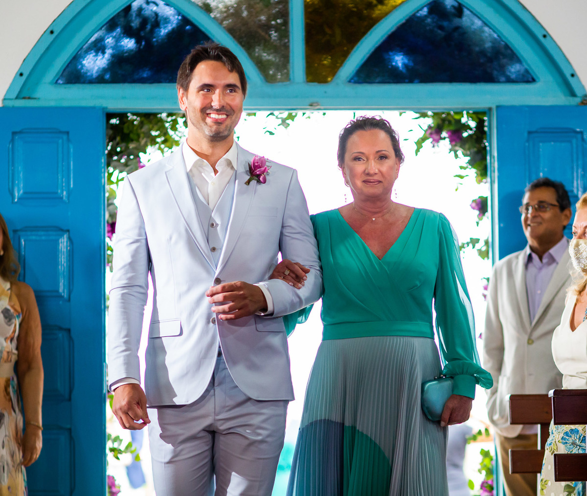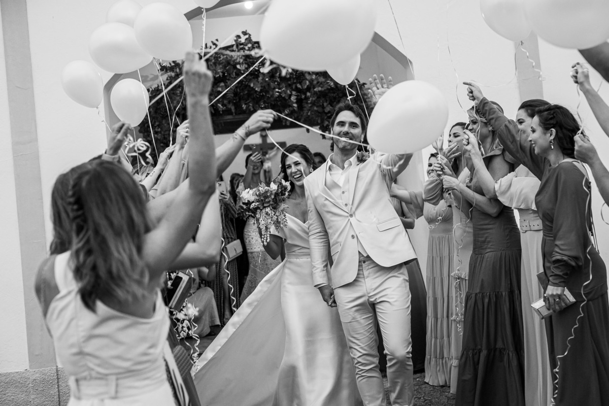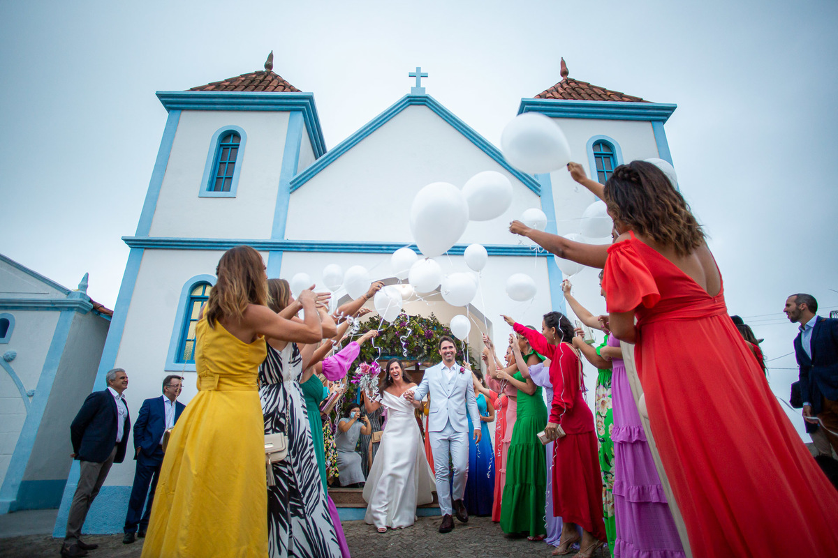 A recepção foi na casa da família do noivo, ao lado da igreja: os convidados foram para a festa caminhando.